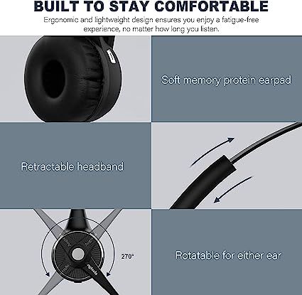 - Weights only 1.7oz, featuring with balanced over-the-headset design and soft protein memory-foam padding, the headset provides you comfortable wearing experience for intensive all-day use. Designed with stretchable headband, you can adjust it to a suitable width according to your head's size.